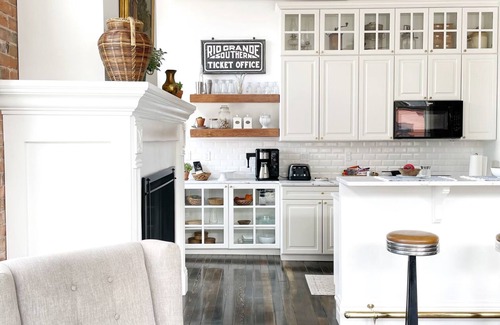 Gorgeous, upstairs 2 bedroom, 2 full bath loft-like apartment in the center of all the action in Silverton, Colorado in the heart of the scenic San Juan Mountains. Remodeled in 2017, this spectacular space offers panoramic views of the mountains and the main street of town from all windows, particularly from the loft like living room-kitchen area. The Greene St. Loft sits at the front part of this historic 1895 brick building, overlooking the main street of town. Decorated by a professional decorator, this apartment offers the perfect mix between antique, vintage, and modern decor.