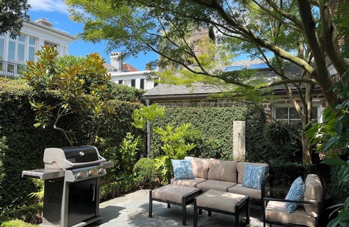 Discover the beauty of this historic, yet comfortable, South of Broad Charleston home! With off-street parking for 2 vehicles, you can leave the car and walk to renowned restaurants, museums and galleries. Located just 800 feet from the iconic waterfront of the Charleston Battery and 2 blocks from Rainbow Row. Guests will feel at home in this lovely 2-bedroom house with 2 queen beds and 2.5 bathrooms, den, outdoor patio, and large screened porch. The cozy living room includes an American Leather queen sleeper sofa for extra comfort. The kitchen is well-appointed with high-end appliances. Enjoy amenities like WiFi, dishwasher, washer/dryer, AC, WiFi, and gas grill during your stay. This charming home has been featured in Southern-Living and the Charleston Preservation Society’s Tour of Homes.