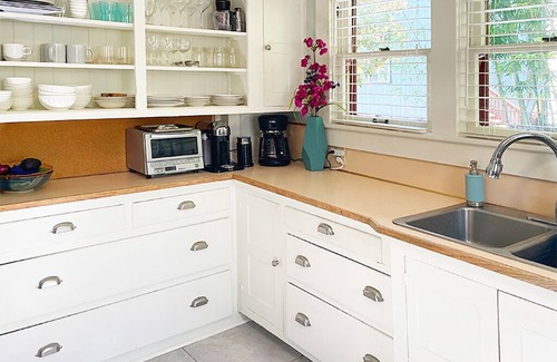 The charming craftsman-style Verna J. Smith home is perfectly located in a shaded historic neighborhood nestled between the OSU campus and downtown Corvallis. This 1175-s.f. craftsman-style cottage was built in 1918 and has been lovingly cared for and maintained over the years. It boasts three bedrooms, one-and-a-half bathrooms, a full kitchen, dining room, washer and dryer, and cozy living room with a television and gas fireplace. The large outside deck is perfect for lounging and visiting with friends. Verna will charm you with her timeless beauty and will give you a captivating look into days long past.