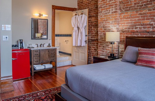 Enhancing the experience, The Belmont Hotel on the second floor is a beautifully restored Victorian boutique hotel featuring four rooms that blend historic charm with modern amenities, and can accommodate up to 12 guests.