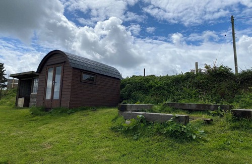 peaceful countryside location on an organic smallholding with rolling hills, starry skies, and a hidden pocket of temperate rain forest. Perfect nature retreat, with basic amenities including a compost toilet, camp kitchen and warm shower. The hut has a small double bed, only 20 mins drive to Falmouth and some fantastic beaches. **Please note. The hut is located half a mile down a bumpy track, not suitable for lowered vehicles**