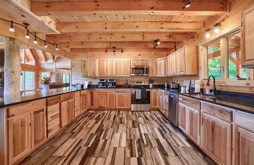 Each bathroom features luxurious tile adding to the beauty of this cabin. Features approximately 3500’ of decking alone! Can sleep up to 26 people comfortably. Sits on 8 acres of privately owned land. Built in 2022. Asphalt black top drive and parking added in spring of 2023.