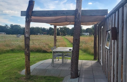 The chalet De Oeverzwaluw offers everything you need for a relaxing holiday in nature. This 4-person chalet is located in unspoilt heathland and is fully equipped to make your stay as comfortable as possible.The property features a cosy living room with free WiFi, a dining table, seating area and double garden doors leading to the terrace. The kitchen is fully equipped, including a cooker, coffee maker and a fridge/freezer combination. In the two bedrooms, you can choose between a double bed or two single beds. The bathroom has a shower, washbasin and toilet..Around the chalet is an enormous garden of 2000 m² and you have the opportunity to make your holiday even more cosy with a campfire in the designated spot. Here you can completely relax, surrounded by nature and the sound of birds. You can park your car for free and the chalet has a lovely terrace of 9 m² with garden furniture to fully enjoy the outdoors.The Oeverzwaluw is perfect for nature lovers, peace seekers, and outdoor enthusiasts. Your pet is welcome, provided it is leashed and has a bench for the nights. The chalet offers everything you need for a relaxing holiday in a tranquil environment.