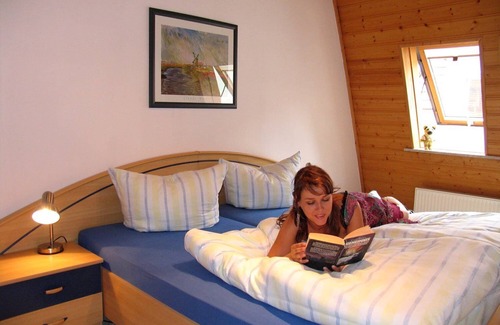 Our largest accommodation is in the attic (2. OG not barrier-free) and has 2 bedrooms with 2 double beds each.