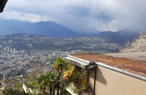 Al Bosco is a very comfortable 2½-room holiday apartment at the top level of a condominium (with elevator), which comprises two six-family houses. It is located in Aldesago, a little village in the municipality of Lugano, in an elevated position on the slope of the Monte Bré, in a preferred, sunny and quiet location close to the forest. Its showpiece is the marvelous and fantastic view, overlooking the bay of Lugano, the opposite San Salvatore, the dam of Melide and the Alps, sometimes as far as to the Monte Rosa. Sunny weather provided you can enjoy beautiful evenings and sunsets on the balcony.