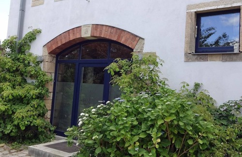 The apartment is located in a former sheepfold. Old building elements, such as the set sandstone walls, the old beams and new details, such as the perforated dividing wall between the bedroom and the living area, combine to form a single unit. The apartment is new and modern equipped with TV and radio and wheelchair equitable furnishings. The bathroom is spacious with a walk-in shower, a sink that can be lowered and handles on the toilet, which can also be removed. The kitchen consists of a comfortable fitted kitchen with complete kitchen equipment and dishwasher. Two large windows on the gable give the view to a small terrace with garden furniture and the garden. They go east. In the sleeping area is a double bed (180x200cm). There is an extra bed or a cot. Or adults and older children can sleep in the living area on the sofa bed (140x200 cm). The large window in the bedroom is facing south and into the garden. Free WiFi is available in all areas.