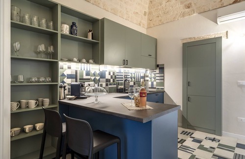 The holiday apartment "Civico40 Suite" is located in Locorotondo and is a great choice for a getaway with your loved ones. The 2-storey property consists of a living room with a sofa bed for 2 people, a fully-equipped kitchen, 2 bedrooms, 1 bathroom and an additional toilet and can accommodate 5 people. Among the on-site amenities are high-speed Wi-Fi (suitable for video calls), a dedicated workspace for home office, a smart TV with streaming services, air conditioning and a capsule coffee machine. A baby cot is also available.