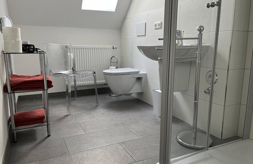 The two vacation apartments with a view over the small town have been created under the new slate roof. Our guests can go hiking on the Rennsteig, skiing and water sports on Germany's largest dam. A guided tour of the exhibitions, the workshops and the museum of lithography are included in the price of your stay. You are welcome to take a course in ceramics or lithography. Or simply relax in a deckchair in our leafy courtyard, which is slowly becoming a real garden. We look forward to welcoming our guests and always want to be there for you.