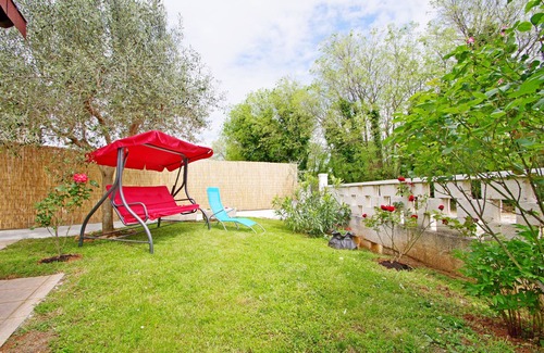 Spacious 2 bedroom apartment in the village Dobrani on the southeast side of the Istrian peninsula. Located in the green surrounding, covering 100 m2 of the yard, away from crowd and hustle, this affordable apartment is good choice for peaceful family vacation. You can enjoy warm summer evenings with barbeque dinner while children are playing in the fenced garden .