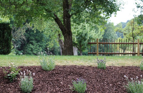 The accessible ground floor apartment 'Lauter' offers around 50 sqm of space for up to 4 people. Wooden floors, half-timbered walls, and a small wood-burning stove create a cozy atmosphere and a pleasant living environment. The apartment has two separate bedrooms, a large bathroom with natural light, and a comfortable living-dining area with a well-equipped kitchenette. On the small south-facing balcony, you can enjoy the wonderful view of the greenery and relax. A parking space at the house is available. The beds are made upon your arrival.