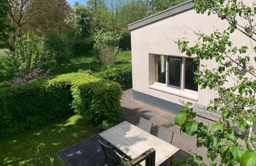 The flat has a private terrace with a south-facing garden area, adjacent to a pond, where you can enjoy the peaceful atmosphere. This outdoor area offers the perfect place to relax after a day exploring beautiful Groningen. Although pets are not allowed, the private garden offers itself perfectly for moments of peace and connection with nature.