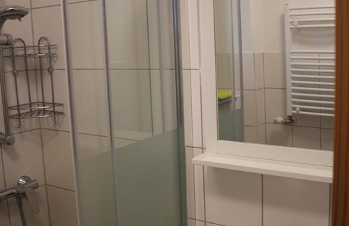 We have furnished some of the flats with lovingly refurbished furniture from our grandfather's time. This gives the rooms an individual flair, which is emphasised by the natural wooden floorboards. A smoking area with seating is 8 metres away. The nearest shopping centre is 4 km away. There are 4 fully furnished guest accommodations on the property. Your parking space is located on the property. The tenant must inform the manager of the expected time of arrival a few hours before taking possession of the flat. The holiday home is located on the same plot as the owner's house. Arrival is between 4 and 6 pm. Please arrange any deviations by telephone. On the day of departure, please return the keys by 10 am at the latest.