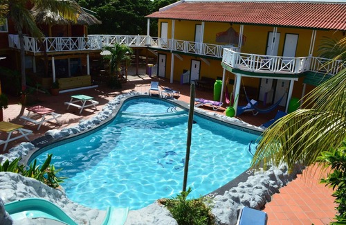 Relax at the shimmering pool or take a 5 minute walk to Forti Beach to jump into the clear water of the Caribbean ocean. Curaçao is an island to explore, close by you find more beautiful Caribbean beaches and the Christoffel National Park.In the Resort you will also find a PADI Dive School who offers tanks, weights and everything to need to dive the colorful underwater world Curaçaos. 24 hour diving wherever you want.
