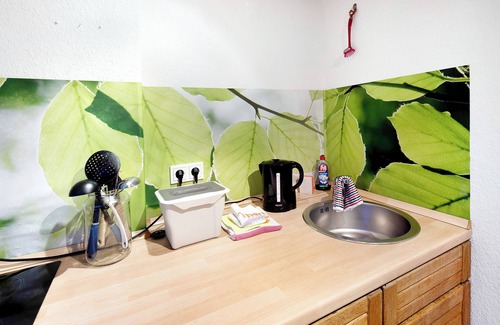 The "Vogelsberger Bett 5 Die 2" vacation apartment in Alsfeld is a great destination for a solo getaway. The 25 m² accommodation is located in part of a half-timbered house and consists of a living/sleeping area, a fully equipped kitchen and a bathroom and can accommodate 1 adult. Guests should note that the ceiling height may vary. Facilities include high-speed WiFi (suitable for video calls), a workstation for home office, a TV, a fan and a washing machine. There is also a table tennis table. A baby crib, high chair, iron and ironing board can also be provided.