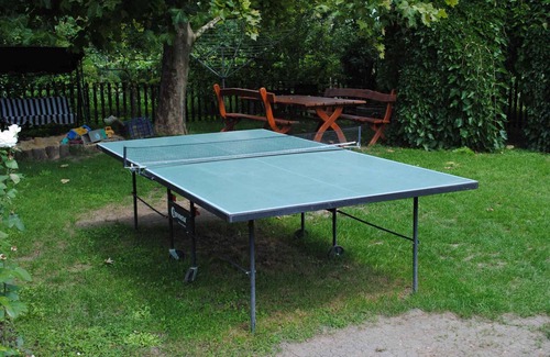 The holiday apartment is located in a semi-detached house and is furnished in a rustic style. Also due to its sunny location the domicile is popular. Available for your exclusive use: sunbathing lawn, children's playground, sandpit, barbecue facilities, garden furniture, campfire site and courtyard. kettle, discLocationÖrvényes. The holiday apartement is located on a 1200 sqm enclosed garden plot with meadow, flowers, shrubs and trees. The landlord lives permanently in the house, but uses a seperate entrance. In the house there is another holiday apartment BAL UDV 004 (5 persons) Parking (for 10 cars) is available on the property. SpecialFacilities: internet access (WLAN). TV reception takes place via electric wire. Leisuretable tennis. Dogsallowed. Free of charge. DistancesShopping 50 m, restaurant 100 m, town center 100 m. discotheque in 3 km. pharmacy, bank each 7 km in Balatonfüred. doctor in Örvényes 100 m. Railway line 300 m. Tihany peninsula 7 km away. In summer: Balaton 300 m in Örvényes (beach 800 m in Örvényes). tennis in 3 km. horse riding in Balatonfüred 7 km. boat rental in Örvényes 800 m. Beach with meadow and sand 800 m. DivisionHoliday apartment, 1 floor, 4 rooms (including 3 bedrooms), 100 sqm, in total 8 beds (including 1 additional bed). RoomThe entrance to your holiday apartment leads over an internal staircase directly into the porch. Dining room with TV. Bedroom with 1 double bed and access to the balcony (garden furniture, parasol). Bedroom with 1 double bed, 1 single bed, 1 additional bed on couch/sofa (only suitable under the year of 14) and access to the balcony (garden furniture, parasol). Bedroom with 2 single beds and access to the balcony (garden furniture, parasol). Cooking nook with electric stove, fridge (icebox) and coffee machine. Bathroom with bathtub and washing machine. Separate toilet with WC. Terms of lease and pricesIncluded in the priceinternet access, parking place, electricity, gas, water, final cleaning, bed linen, Wireless Internet access. Side costs-Additionally(Payable when booking)/local tax.Deposit:EUR 100,-/object