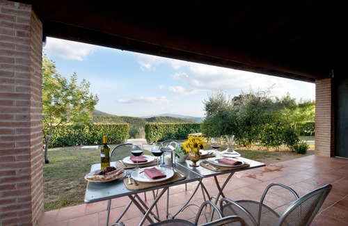 The holiday apartment is located in a detached single-family home and is furnished in a typical country style. The property is located in a residence. Also due to its quiet and sunny location at the edge of the forest the domicile is popular. Available for use: children's playground and barbecue facilities.Holiday resort1 restaurant and internet (WLAN). LocationGualdo Cattaneo, 450 m above sea level. The holiday apartement is located in a residence, on a garden plot. The residence consists of 3 houses from the end of the last century. Professionally executed renovation. The main building was divided into 8 apartments (Bi-Locale) 2 + 2. The second building consists of 2 apartments (Tri-Locale) 4 + 2 and in the manor house are the restaurant and the rooms. The building is located in the heart of Umbria - between Assisi and Perugia, Todi and Montefalco. Walks in the area with pic-nic places. Access is via a side road (asphalted). Parking (for 1 car) is available on the property. Specialcentral heating (gas).Facilities: baby cot and internet access (WLAN). TV reception takes place via satellite. PoolAll pools are available for shared use. Outdoor pool (7 m x 14 m, depth 1.50 m). Leisure1 bicycle. In the complex: mini golf, table tennis and bike rental. There is also a football pitch, zoo and hiking trails with picnic areas. Dogsnot allowed. DistancesShopping 9 km, restaurant 2,6 km, town center 9 km. DivisionHoliday apartment, 1 floor, 3 rooms (including 2 bedrooms), 90 sqm, in total 6 beds (including 2 additional beds). RoomThe entrance to your holiday apartment is located on the ground floor, is at ground level and leads directly into the kitchen. Living room with 2 additional beds on double sofa bed, TV, access to the terrace (covered, parasol) and Terrace 20 sqm. 2 bedrooms each with 1 double bed. Kitchen with oven, extractor hood, dishwasher, fridge (icebox), coffee machine and toaster. Bathroom with shower, WC, bidet, hairdryer and window. Bathroom with shower, WC, bidet and hairdryer. BoardBreakfast (buffet), lunch and dinner (3-course menu) are available locally. Drinks are extra. Terms of lease and pricesIncluded in the priceOutdoor pool, internet access, bicycle, parking place, electricity, gas, water, pool, table tennis, mini golf, barbecue, Bed linen (weekly change), hand towels (weekly change), baby cot – please order at booking, Wireless Internet access. Side costs-Costs on the spot:/Obligatory:final cleaning 50 € per object per stay. local tax by local tariff (if charged).On request:Breakfast - please order at booking 9 € per person per day. Breakfast - please order at booking 5 € per child under 9 years per day. laundry travel service 15 € ), For a fee: heating, Breakfast - please order at booking under 3 years.Deposit:EUR 150,-/object