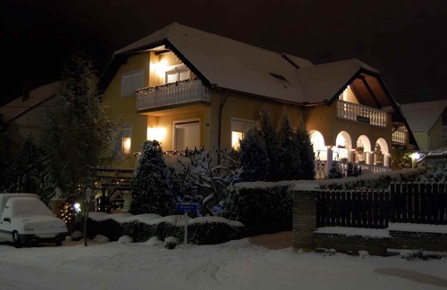 The holiday apartment is located in an apartment house built in 1994, was renovated in 2018 and is furnished in a modern style. The property is located in the town centre. Also due to its quiet and sunny location the domicile is popular. This property is a family-friendly accomodation. Available for shared use: sunbathing lawn, parasol, sun lounger, children's playground, swing, sandpit, barbecue facilities, terrace, pavilion, garden furniture, Hollywood swing, campfire site and courtyard.LocationHévíz, 160 m above sea level. The holiday apartement is located on a 720 sqm enclosed garden plot with meadow, flowers, shrubs and trees, bordered by a fence and a hedce. The landlord lives permanently in the house, but uses a seperate entrance. Exotic plants Access is via a side road (asphalted, length 30 m). Parking (for 2 cars) is available in a garage and in a carport and on the property. Parking in a closed yard Specialair conditioning, central heating (gas), underfloor heating. In summer: fan and air conditioningFacilities: children's toys, baby cot, high chair, internet access (WLAN), iron and dryer. TV reception takes place via satellite. There is no broadcast in Hungarian The accommodation has hypoallergenic pillows.For your safety, the accommodation is equipped with CO2 detector, smoke detector and first aid kid.Hygiene measures: disinfectant and final cleaning with sanitisation. Leisure2 bicycles. Dogsnot allowed. DistancesShopping 200 m (200 m in winter), restaurant 300 m, town center 500 m. Hévíz: cinema 1200 m, thermal bath 1400 m, railway station 1500 m, bank 400 m, sauna, pharmacy each 500 m. doctor 600 m. Keszthely: indoor swimming pool 7 km and discotheque 7,5 km. airport in Sármellék 14 km. Railway line 7 km. Main road 400 m. Children's playground 300 m. In summer: Hévíz thermal baths 1400 m in Hévíz (beach 7,5 km in Keszthely featuring meadow, sand and gravel). horse riding in Cserszegtomaj 4 km. dog beach in Gyenesdiás 11 km. Hévíz: golf 1500 m, tennis 500 m and mini golf 600 m. fishing, water sports, boat rental, boat launch each 7,5 km in Keszthely. diving in Tapolca 25 km. Homokos beach Gyenesdiáson 11 km. Kisvasút 200 m. Balaton 7.5 km. In winter: ice skating in Hévíz 1200 m. DivisionHoliday apartment, 1 floor, 2 rooms (including 1 bedroom), 34 sqm, in total 2 beds. RoomThe entrance to your holiday apartment is located on the mezzanine floor, is at ground level and wheelchair accessible and leads over the 8 sqm terrace directly into the living room with doors to all rooms. Living room (10 sqm) with sitting area, TV, radio, CD player and access to the terrace (covered, garden furniture, 1 table, 2 chairs). Bedroom (12 sqm) with 1 double bed. Kitchen (6 sqm) with dining area (2 seats), electric stove (ceramic hob, 2 plates), fridge (120 l, icebox), microwave, coffee machine, toaster and electric kettle. Bathroom (6 sqm) with dryer, shower, 1 washbasin, WC, hairdryer and window. Terms of lease and pricesSide costs-Da pagare in loco:/Obbligatorio:local tax by local tariff.A scelta:bicycle 4 € per bicycle per day. garage 2 € per car per day. air conditioning 2 € per object per day.Cauzione:EUR 50,-/object.