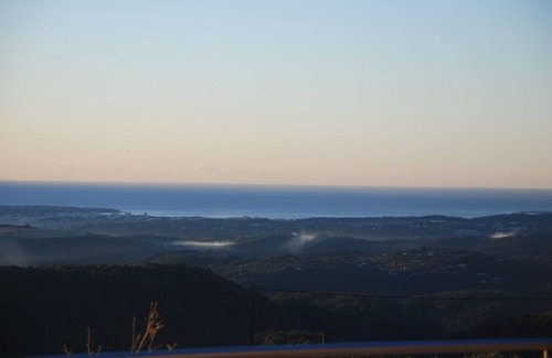 The holiday accommodation has fantastic views over the hills, the sea and the pool, and is located in Tourrettes sur Loup near Vence, at the end of a cul-de-sac. It is surrounded by nature and only 2 Km from the charming medieval village Tourrettes sur Loup, 5 Km from Vence, and only 30 minutes from Promenade des Anglais in Nice, and importantly Nice airport.