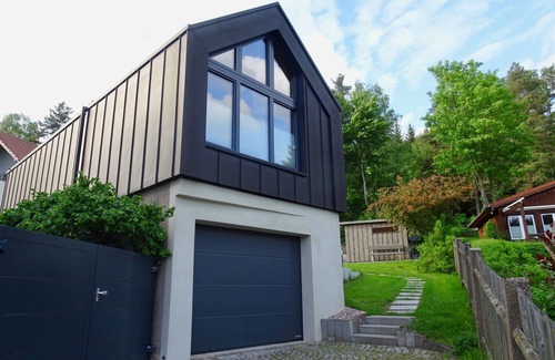New, modern vacation home for two people built in 2021 at the foot of the Thuringian Forest, near Friedrichroda, with its own sauna house in the garden.