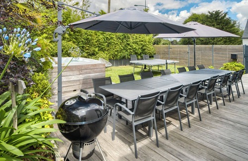 Enclosed garden with large terrace, barbecue, ping pong table.