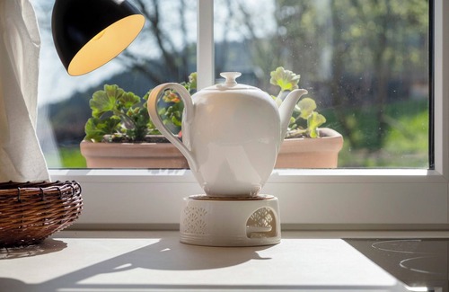 Our bakery was lovingly rebuilt with sandstone from our own land as dry stonework. Inside, wood fiber insulation and clay plaster ensure a pleasant indoor climate. The underfloor heating downstairs and a radiator upstairs are supplied by our wood chip heating system (approx. 65 m away). Fresh spring water from our own spring offers the best drinking pleasure.