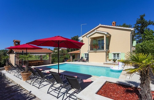 Holiday home for 10, 175 m² with pool in quiet surroundings is located in Muzini. Holiday home for 10, 175 m² with pool in quiet surroundings provides accommodation, featuring TV, Sports/Activities, Wellness Facilities, among other amenities. This Villa features TV, Sports/Activities, Wellness Facilities, to make your stay a comfortable one.