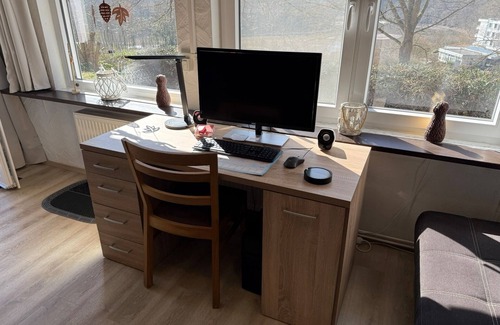 Our cottage is located directly on the reservoir Bitburg. From all rooms you have a wonderful view of the lake. The terrace invites you to rest and relax in summer. The Huas has a total of 77 m² of living space.