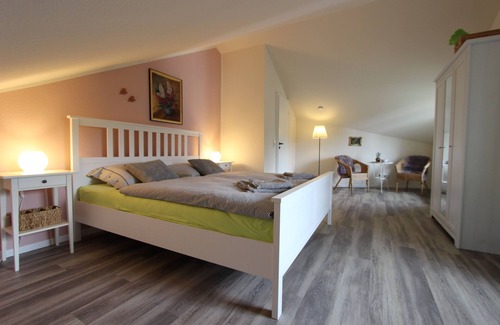 Our beautiful and lovingly newly furnished non-smoking cottage in Stolberg offers enough space for up to 8 people (about 140 m2). It consists of 3 large bedrooms and bathroom on the upper floors and the common living area on the ground floor with living room, kitchen and shower room.