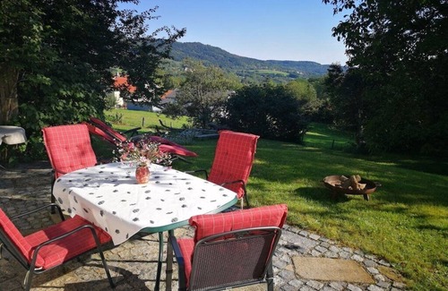The "Bepp" holiday home is a historic, listed Bavarian Forest cottage that has been renovated to modern standards while retaining its original charm. The terrace offers a magnificent view of the Graflinger Valley in the Bavarian Forest Nature Park. Heat and hot water are provided by the village's central wood-chip heating system, and a sauna completes the feel-good package.