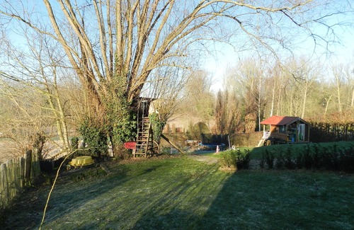 1200m² garden with slide, swing, trampoline, tree house (shared with the owners).