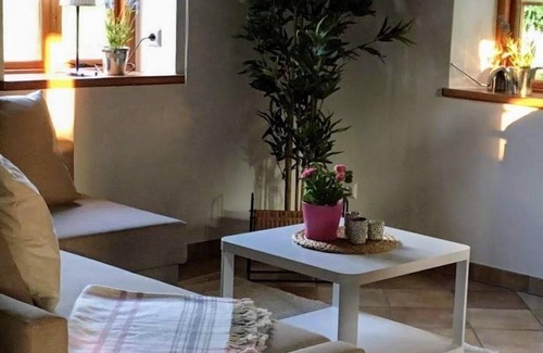 The house is integrated into our lovingly restored property. In one of the outbuildings we have furnished an apartment with rural charm and modern facilities in which two bedrooms and an additional sofa bed in the living room offer space for 4-5 people. Ovens and dishwashers in the kitchen ensure convenient self-sufficiency.Free WiFi and a flat-screen TV are of course available.