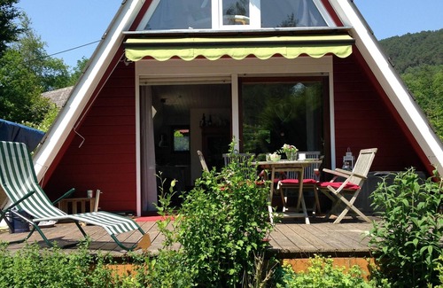 The house itself is a so-called roof-only house, as they are present in the entire holiday village Eichwald. The holiday village is located in its own, quiet area near the community Gossersweiler Stein in the district of Southern Wine Route in the Palatinate and the Palatinate Forest. Here is an ideal starting point for excursions - also in the neighboring Alsace with the city Weissenburg (Wissembourg), the North Vosges and the Wasgau. Of course, the area is predestined for hiking - even holidays with a dog - and for cycling, mountain biking or motorcycling. Also in the holiday village Eichwald itself, the house 27 is conveniently located in the outskirts in direct south exposure.