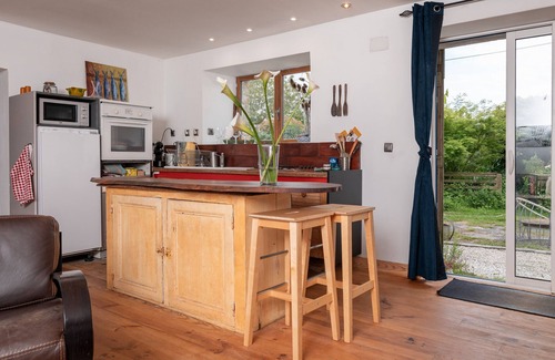 Located in Kervignac, the holiday home Ker Glaz - Longère de charme has everything you need for a comfortable holiday. The 110 m² property consists of a living room, a well-equipped kitchen, 2 bedrooms and 1 bathroom as well as an additional toilet and can therefore accommodate 5 people. Additional amenities include Wi-Fi as well as children's books and toys. A baby cot is also available. This accommodation does not offer: air conditioning and towels. This vacation rental offers a private outdoor area with a garden, open terrace, and barbecue amenities.