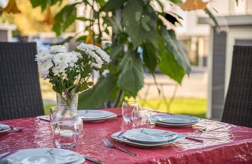 A parking lot is available on the property. Bringing pets is not allowed. Smoking is not allowed. As the accommodation was built recently, the road to the house is still under construction, so the road to the parking lot behind the house is currently gravelled. After booking, please fill out the Holidu contact form that will be emailed to you completely and include your address. This will help the host to prepare your stay in the best possible way.