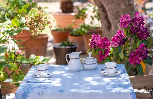 This vacation rental features a private garden for peaceful mornings.