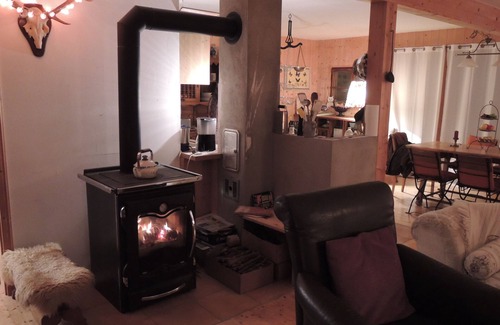 On the ground floor is a cozy living room with a large wood stove. The warmth of the wood stove on the ground pulls over the open door to the top. There are on the first floor (attic) a double bed, two single beds, if necessary we provide for the 5th and 6th. Guest two extra mattresses available. In the bathroom there is a heat wave device. The house is romantically located and surrounded by a large garden.