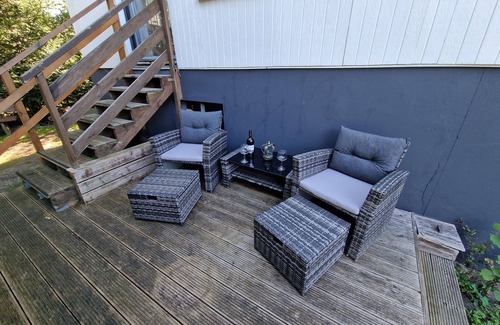 The spacious private garden with two terrace areas invites you to relax in a peaceful setting. There is a parking space on the property, and additional parking is available on the street. Events and parties are not permitted on the premises.