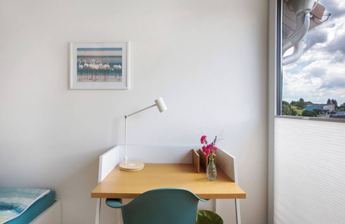 Our vacation home has a living space of approx. 60 sqm over three floors. It was completely renovated and refurnished in 2018. Vitra chairs, Nespresso coffee machine and 2 outdoor seating areas invite you to relax and are the ideal starting point for excursions, trade fair visits (BASELWORLD, MUBA, Art Basel) etc. The cottage is reminiscent of one of the narrow town houses in Basel and is therefore unfortunately not handicapped accessible. Dogs are welcome. Unfortunately, other pets are not.