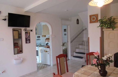The detached holiday home built in 2002 and is furnished in a modern and typical country style. The property is located in a busy environment. Also due to its sunny location the domicile is popular. Available for use: parasol, barbecue facilities, terrace, garden furniture and campfire site. Shorter stays in the low season possible on requestLocationCsopak. The holiday home is located on a 600 sqm open garden plot with meadow and shrubs. The landlord does not live in the house or on the property. Stone house next to the vineyard Access is directly from the main road. Parking is available on the property. Specialair conditioning.Facilities: internet access (WLAN). TV reception takes place via satellite.For your safety, the accommodation is equipped with smoke detector. Dogsallowed, EUR 10.00/pet per day. DistancesShopping 1200 m, restaurant 100 m, town center 1500 m. In summer: Balaton 2,2 km in Csopak. Balatonfüred: golf 15 km and tennis 2 km. Csopak: horse riding 2,5 km and boat rental 3 km. Gymnasium 3 km, Aqua-park 3 km. DivisionHoliday home, 2 floors, 4 rooms (including 3 bedrooms), 70 sqm, in total 6 beds. RoomThe entrance to your holiday home is located on the ground floor and leads directly into the living room.Ground floor: Living room with sitting area, TV and dining area (6 seats). Bedroom with 1 double bed. Cooking nook with gas stove (3 flames), oven, fridge, microwave and coffee machine. Bathroom with shower, 1 washbasin and WC. Upper floor: 2 bedrooms each with 2 single beds and access to the balcony. Bathroom with bathtub with shower facility, 1 washbasin, WC and window. Terms of lease and pricesIncluded in the priceinternet access, parking place, electricity, gas, water, final cleaning, bed linen, Wireless Internet access. Side costs-Costs on the spot:/Obligatory:local tax by local tariff.On request:air conditioning 7 € per object per day (27.05.25-25.09.25, 26.05.26-24.09.26).Deposit:EUR 150,-/object
