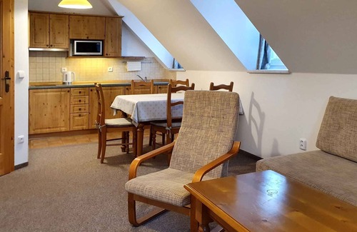 Best-rates for the Police nad Metuji house starts from $696 per night with includes Kitchen, Parking, Balcony/Terrace, Security/Safety, Skiing, Fireplace/Heating, Child Friendly, Internet with all other facilities. Vacation Cottage™ provides a diverse array of lodging choices for every kind of traveler. We aim to pair each traveler with their ideal cabin, resort, or rental, ensuring a pleasant and satisfying stay with all necessary amenities.