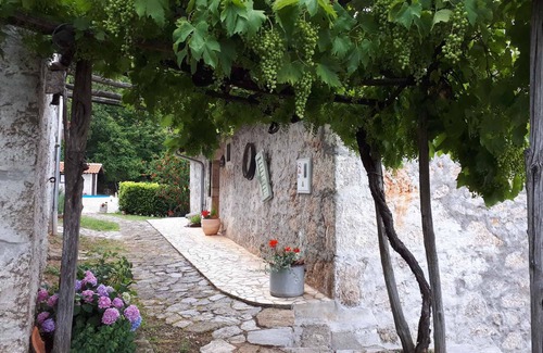 The detached holiday home built in 1878, was renovated in 2008 and is furnished in a rustic and typical country style. The property is located on the outskirts. Also due to the view over the sea from the property and its quiet and sunny hillside location the domicile is popular. This property is a family-friendly accomodation. Available for your exclusive use: parasol, sun lounger, garden shower, barbecue facilities, terrace, garden furniture and courtyard. A children's playground, a swing, a sandbox and a table tennis table are available for shared use.LocationDobreć, 340 m above sea level. The holiday home is located on a 1000 sqm open garden plot and forest plot with meadow, flowers, shrubs and trees. The landlord does not live in the house or on the property. Access is via a side road (asphalted). Parking (for 2 cars) is available on the property. Specialair conditioning.Facilities: high chair, internet access (WLAN), iron and washing machine. TV reception takes place via satellite.For your safety, the accommodation is equipped with fire extinguisher and first aid kid. PoolAll pools are available for exclusive use. Outdoor pool (usable from end of May to end of September, diameter 4 m, depth 1,50 m). Leisurefitness equipment and table tennis. Dogsallowed, EUR 10.00/pet per day. DistancesShopping 5 km, restaurant 5 km, town center 5 km. Abbey: discotheque 12 km and cinema 27 km. railway station in Fiume 25 km. indoor swimming pool, sauna, doctor, pharmacy, bank each 5 km in Lovran. airport in otok Krk 50 km. Main road 5 km. Children's playground 10 m. In summer: Adriatic coast 5 km in Lovran (beach 5 km in Lovran featuring gravel, stones, rocks and bathing plateaus). dog beach in Ika 6 km. Lovran: diving 13 km and tennis, fishing, boat launch each 5 km. boat rental in Mošćenička Draga 13 km. horse riding in Učka 8 km. DivisionHoliday home, 2 floors, 3 rooms (including 2 bedrooms), 113 sqm, in total 6 beds (including 2 additional beds). RoomThe entrance to your holiday home is located on the 1st floor