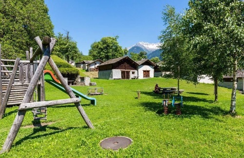 The outdoor area of the holiday home is complemented by a garden for communal use. Ideal for relaxing after a day in the mountains or exploring the surrounding area. This communal garden is the perfect place to soak up the atmosphere of Bregaglia and socialise with other guests or simply enjoy the peace and quiet.