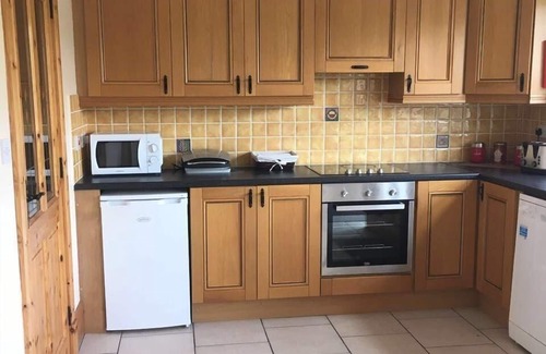 The sunlit kitchen looks out over the garden and is equipped with a fridge/freezer, cooker, dishwasher, washing machine and dryer. Glass patio doors lead from the kitchen to your private patio area and garden.