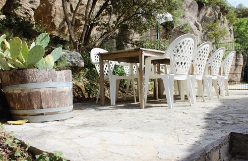 terrace(private), garden furniture, sun loungers, 1x parking, parasol, swimming pool(private, 10 x 4 m depth: 2.5m, opened from May upto and including Sep)