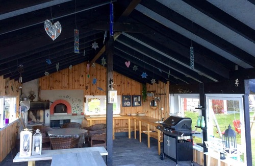 The site has an open garden dining room with a fireplace, wood-burning oven and garden furniture, so you can sit together and relax in the evenings in front of the fire. The wood-burning oven can be used by guests, with firewood provided free of charge. Behind the house there is a great children’s playground with a slide, swings and a cool Wendy house. The barn houses a festivities venue that can be booked for special events. The site is not fenced in, but pets are allowed. Dogs can be kept on the leash and must also be sufficiently vaccinated to be allowed into Norway.