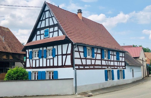 L'Alsacienne aux 29 coeurs: Renovated, detached, half-timbered house dating from the 18th century, located in a farmhouse in a small, quiet village near Strasbourg.