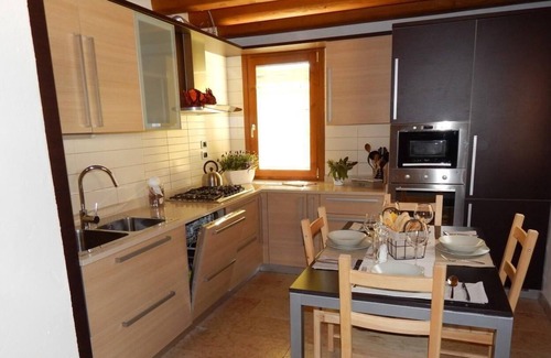 This holiday house refurbished in 2006 lies in the valley of Monte Grappa. Surrounded by the green mountain landscape, guests can spend their holiday in the midst of nature and take a break from daily working life. The owner lives in a house in the neighbourhood and is happy to assist guests with any queries or problems they may have.