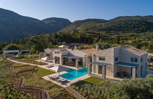 Alessia Luxury villafor 8 is located in Kalamitsi village its close proximity to the capital town of Lefkada, which is only a 35-minute drive from our premises. Cascading down the road near the villa, you will get to gorgeous, white-sanded Kathisma beach, in just 14 minutes.Perched on the crest of a hill surveying the sublime blue Ionian Sea to one side and the mountainous interior of Lefkada to the other, Alessia Luxury villa offers guests flexible accommodation over two houses, a generous amount of space, and a calming ambience in which to unwind in a pure Greek style.