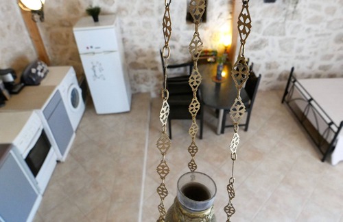 On the 1st level there is a double metal bed, a children's crib, a dining table, a bathroom, a kitchen with refrigerator, an oven and a filter coffee machine. Can accommodate up to 3 guests (adding an extra sgl bed, upon request).