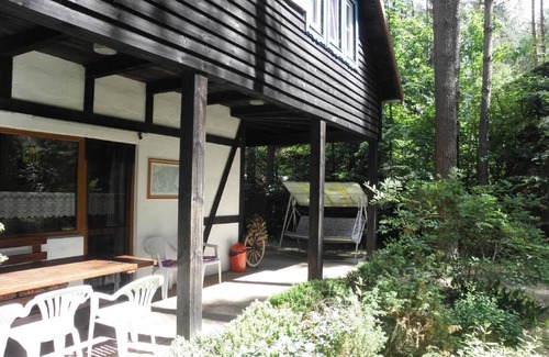 The house on a plot of 1100m², fenced and wooded with 100 year old pine trees, creates the perfect conditions for relaxing in the open air. There is a covered terrace with garden furniture, a detached bungalow with sauna and shower, a brick barbecue with a table and wooden benches for feasting, a table tennis table in the garage and a sandpit for children in front of the terrace and a basket for playing basketball suspended from a tree. These amenities will make every day spent around the cottage full of joy and relaxation.